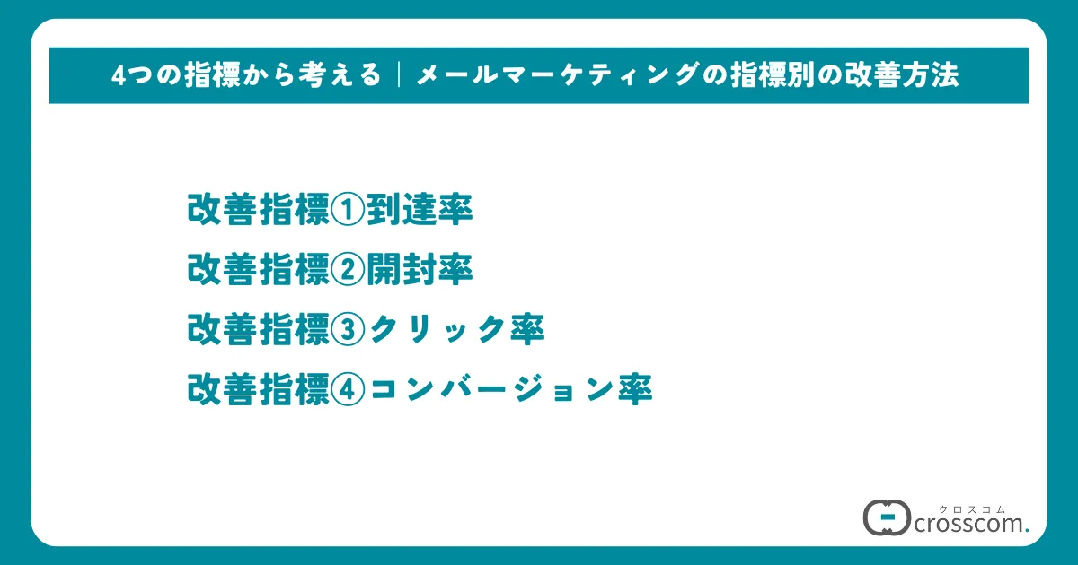 以上3つが、クロスコムが考える3つのKPI候補でした。目的や施策のフェーズごとに適切に設定することで、メールマーケティングの成果を最大化する重要な指標として機能します。