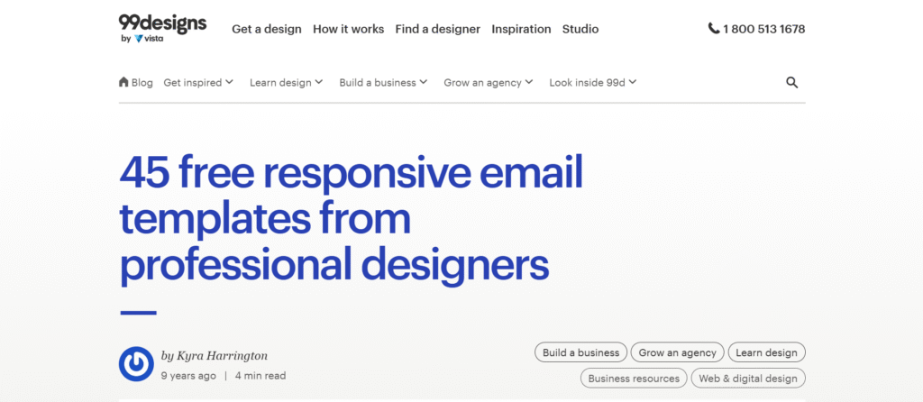 99designsは、世界中のデザイナーと企業をマッチングするプラットフォームとして知られていますが、メールデザインのインスピレーション源やベースとなるテンプレートも提供しています。テンプレート集を眺めるだけでも、「自社ブランドに合うメールの雰囲気はどんなものか」を具体的にイメージしやすくなります。