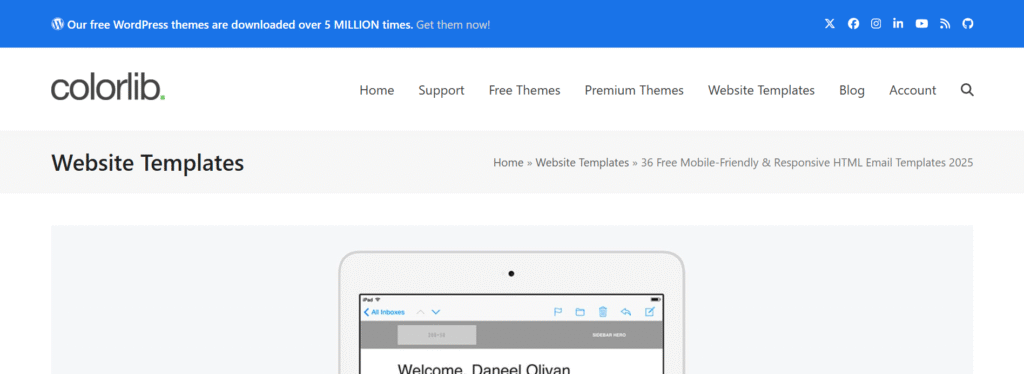 Colorlibは、さまざまなカテゴリのメールテンプレートを幅広く提供しているサイトです。ニュースレター、キャンペーン告知、サンキューメールなど用途別にテンプレートが用意されているため、「どの場面でどんなレイアウトにすべきか」のイメージを掴みやすい点が魅力です。
