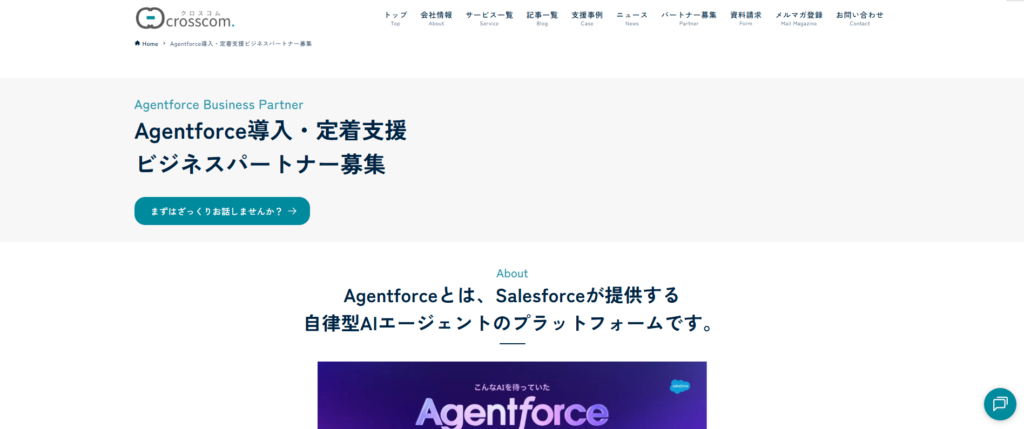 2026年2月28日、クロスコムはSalesforceのAIエージェントプラットフォーム「Agentforce」の導入・定着支援を行うビジネスパートナーの募集を開始しました。